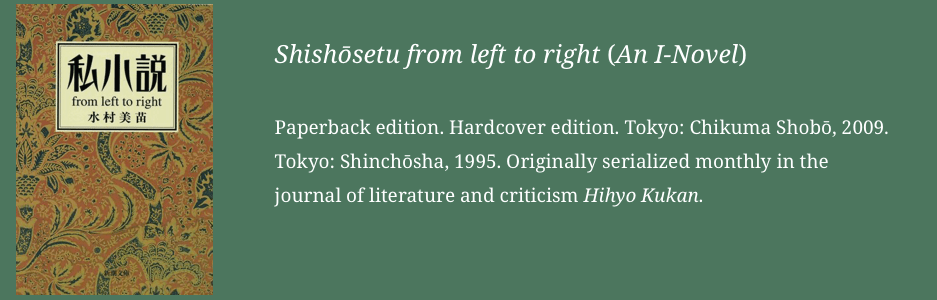 Japanese writer Minae Mizumura’s fictionalized autobiographical work An I-Novel takes place over the course of a day–the day that marks the twentieth anniversary of, what Minae and her artist sister Nanae call, “our Exodus.” Their family’s move to America from Japan, following Japan’s defeat in WWII. The seemingly uneventful day also reveals to its narrator and protagonist Minae that she has come to a threshold.